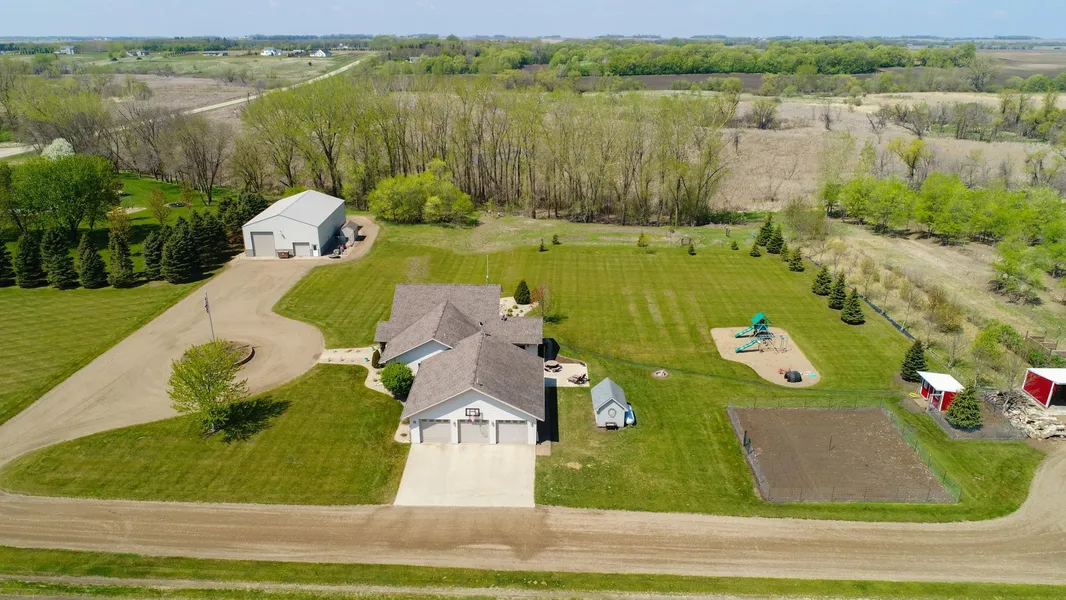 Quiet, country living just 4 miles North of Morris on a tar road! 10 acres of perfection with a 4000+ square feet home and a 64' X 40' shop. Acreage also has 3 newer outbuildings, a playground, horse or atv trails, gardens, pasture, wooded areas, etc. Home has 4-5 bedrooms, 4 baths, main floor laundry, oversized 3 stall garage with in-floor heat, and a ton of updates. Kitchen has an open floor plan, an island with a granite top, double oven, and large fridge and freezer combo wrapped around custom Carlson Cabinets! Tons of square footage inside with multiple big living rooms that can be used for anything including a theatre room, library, work out room, etc. Enjoy the views in the large master bedroom which includes a master bath and walk-in closet. The sunroom and back patio are perfect to watch the sunsets and the kids in the backyard. Come see this country paradise today!