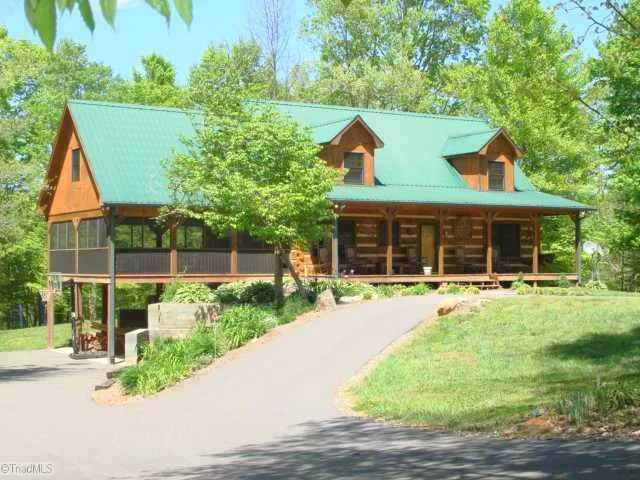 Gorgeous Log Home on 10 acres with pasture and its very own "Pilot Retreat"! Enjoy the beach area of Toms Creek - great for a family picnic. This is it! Rock Fireplace, Huge Screened in Porch for social gatherings, Rocking Chair Front Porch, Paved Drive, Playground, Full Basement. Great for horses. Rural yet convenient estate in the heart of Pilot Mountain.