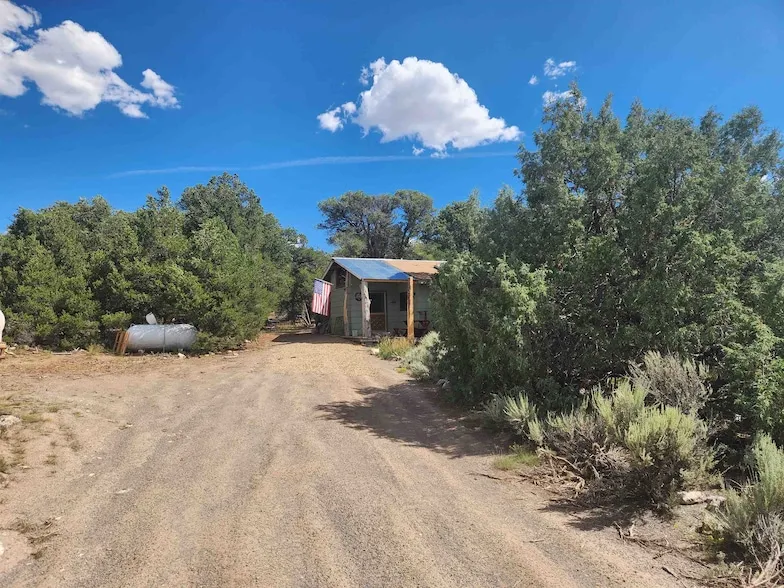 Discover this 1,536-square-foot, 3-bedroom, 2-bathroom home, perfectly situated in the sought-after hunting Unit 50 of Tres Piedras. Designed for off-grid living, the home features a fully paid-off 48-volt solar system, complemented by a separate 12-volt solar setup for the pump house. The property includes a leased 500-gallon propane tank from AmeriGas and a 1,650-gallon freshwater cistern with a newly updated pump, easily refilled by the Rim Road Water Association as needed. Stay cozy during colder seasons with two wood stoves and propane heaters. Inside, you'll find newly installed vinyl plank flooring, offering both style and durability in this self-sustaining home. Located just a stone's throw from the Rio Grande Del Norte National Monument an essential wintering area for wildlife and a vital corridor between mountain ranges you'll enjoy frequent sightings of beautiful wildlife. Set on 10 acres with few neighbors, this property offers privacy and seclusion.