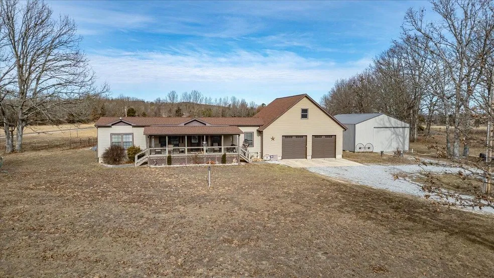 Well-maintained 3 bedroom, 2 bath modular home on a permanent foundation, built in 2014 by Three Stone Homes with quality 2x6 walls and sheetrock finish throughout. The open-concept living and kitchen area offers a functional and inviting layout, perfect for everyday living and entertaining. An attached 2-car garage features 10-foot garage doors and includes upstairs space ideal for storage or additional living area. Enjoy covered decks on both the front and back of the home, providing great outdoor living options. The property also includes a 30x40 detached pole barn with electric and water. Situated on 10 acres with a fenced backyard, raised garden beds, and a beautiful, private setting, this property is exceptionally well cared for and ready to enjoy.