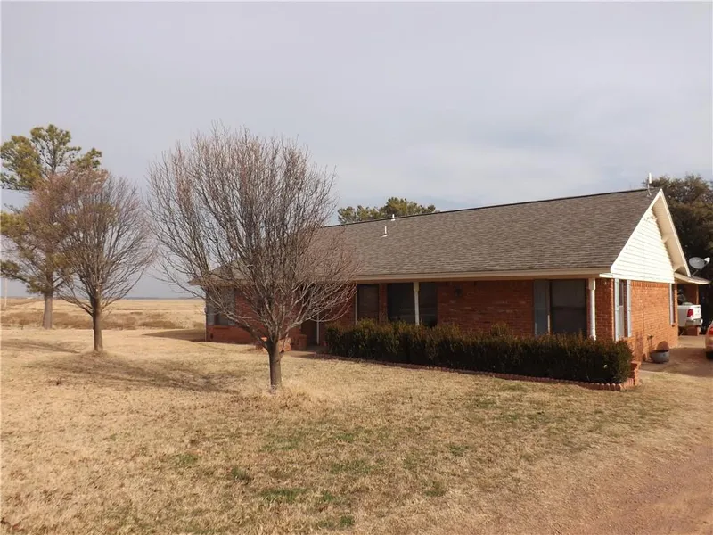 Brick home on 10 acres of Bermuda grass. Property is totally fenced! Home was built in 1980. Large concrete block barn 39.2' x 80.1' which has new electrical lights, wiring & water. HOME has Nice large rooms with 3 bedrooms/2 baths /large laundry room with wet sink . Home has amazing closet space. Family room with tall ceilings with wood beams & wood burning fireplace. Kitchen has plenty of cabinets. Total electric home, Nice covered patio or serves as a carport. Several mature pine trees. Nice gravel driveways for plenty of parking. Frederick City water, septic tank. Central H/A heat pump. Good storm cellar. Roof was replaced in March of 2016 to home & metal roof on large horse barn. Barn has several divided pens for livestock. Serviced by Southwest Rural Electric. Propane tank on property is lease & was used only for tractor fuel.