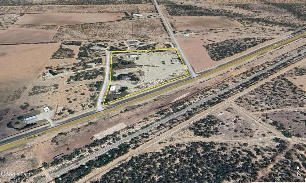10 acres with frontage on Hwy 67, Hobbs Road and Private Road 405. This tract has lots of potential for commercial ventures. Two metal buildings, one is 3200sqft with one roll up door and the other is 2400sqft with a roll up door. Office building with 3360sqft. The single wide will be excluded from the sale. A residence with 1650sqft is on the front half of the property that needs remodeling. Most of the property has a solid caliche base and capable of handling big trucks. Some deed restrictions exist.