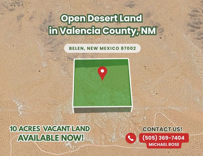Discover your own 10-acre high-desert oasis just south of Belen and about 45 minutes from Albuquerque. This generous parcel sits at around 5,100 feet elevation and offers wide-open views of blue skies, mountain silhouettes and stunning sunsets. With a minimum lot size requirement of only one acre, this 10-acre property is perfect for building your dream homestead or creating an off-grid retreat with plenty of room to roam. There is no HOA and taxes are low, giving you freedom and flexibility.