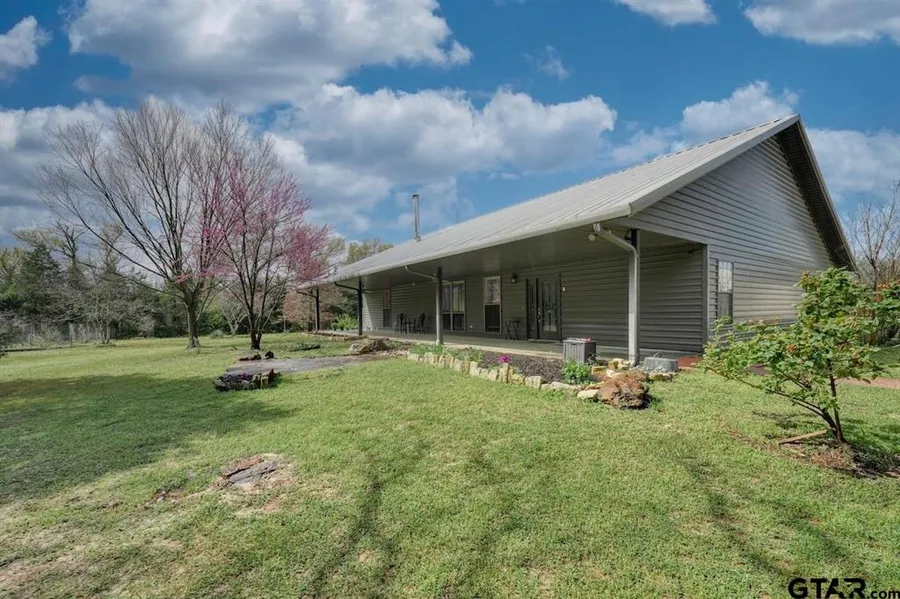 Escape to this self-sufficient year-round retreat, conveniently located near Dallas, Tyler, and Canton. Nestled on 10 acres of secluded land, this sanctuary offers everything you need for off-grid living. Stay connected with nature and peace of mind with an aquifer deep well, powered by a full-home generator for emergencies. Delight in the year-long natural spring of Slater Creek and ample wood for your in-home wood-burning stove. Embrace sustainability with chicken pens, a greenhouse, and prepared organic gardens. The home itself is a testament to privacy and efficiency, with metal roof and siding, post tension slab, 6 inches of insulation, a high beam ceiling, and 4 bedrooms and 2 bathrooms. Enjoy spacious living and kitchen areas, along with essential features like a water filtration system and military-grade surge protector. Outside, discover the fully and inner fenced land with agricultural exemption, perfect for livestock grazing, PLUS high probability for usage of adjoining 10acres. Additional amenities include walk in pantry, in-home tornado shelter, 80-foot radio tower, safe room-storage room, hobby shed, large 20 X 30 barn which matches the home and an apartment turned garage or workshop with bath area. With oversized rooms throughout, including a massive utility room, every aspect of this property is designed for comfort and functionality. Explore the potential for additional building sites and revel in the tranquility of mature trees, wildlife, and a sprawling covered front porch. Experience true serenity in this secluded haven.