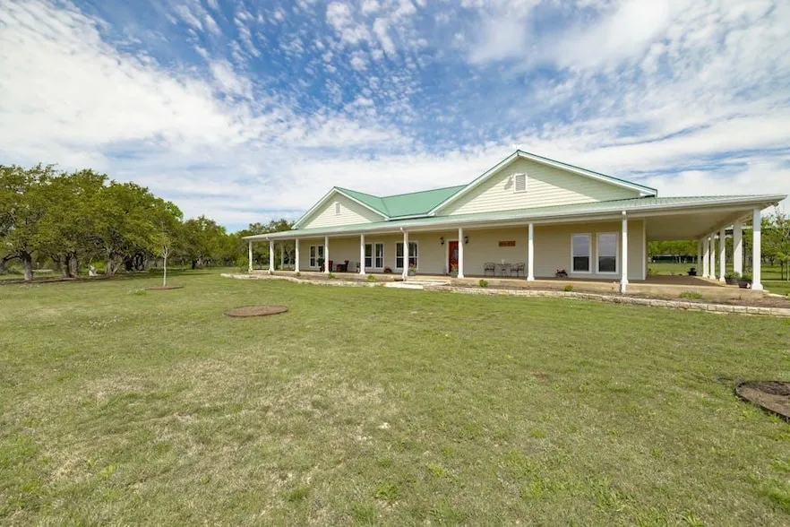 Here is your opportunity to own an amazing home located on apx 10 acres of Texas hill country, owned by the same family for generations! If you re searching for modern living while experiencing privacy & amazing views, look no more! 1st you have a gorgeous 4 bed/3 full-bath home with a wrap-around porch. Inside you will find a kitchen with granite countertops, a built-in oven and features such as a tambour door that elegantly hides the microwave and a convenient pull-out shelf. You have two living areas, one with a fireplace and custom hearth created from wood originating on the old farm. There is plenty of space with a breakfast room & a formal dining room, or utilize this space as a music room or to expand the 2nd living space. Next you have a roomy laundry/mud room with bath and an exterior door to provide easy access from the outside. The bedrooms are bright & spacious, with multiple windows & large closets. The primary bedroom has a door to the outside porch & the adjacent primary bathroom is roomy with dual sinks & plenty of counter space! Next, you will find a detached 2-car garage/full guest house. The guest house can be utilized in many ways, including as a separate dwelling area for extended family, a rental, or even a school room. It has a living room, bath, kitchen & bedroom. Outside, you will find several buildings that include a storage shed & two additional structures that can be utilized for a variety of farm animals including chickens, goats, cows, horses & more. There is a pond on the property & good-quality fencing throughout! Sitting on one of the highest points in Williamson County, you have amazing views of the hill country & can literally see for miles from the house porch. The owners have meticulously landscaped around the house & planted a large variety of flowers & bushes, which complement the existing natural vegetation & large trees. These attract birds & butterflies throughout the year. +3 ac also available (MLS: 1721370).