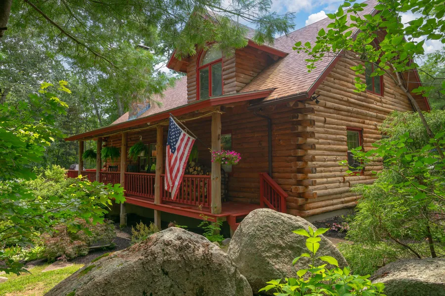 Discover the enchanting Cabin at Ogunquit Crossing, nestled on 10 acres of lush picturesque landscape. This captivating property boasts a meticulously designed custom log home, with wrap around deck, living room with a fieldstone fireplace, soaring ceilings, and gorgeous antique chestnut plank floors. Perfect for entertaining, the home features a Viking kitchen with custom cabinets, separate dining, 3 bedrooms, and 2 newly renovated baths and full unfinished basement for storage. The tranquil saltwater pool, surrounded by a beautifully landscaped setting, invites you to relax and unwind, making it the perfect oasis for leisurely afternoons. The property also features a charming ''barn'' which houses a workshop/studio and a one-bedroom apartment, replete with full separate kitchens, laundry, and garage parking. Experience this true retreat compound conveniently located just a 65-minute dr...