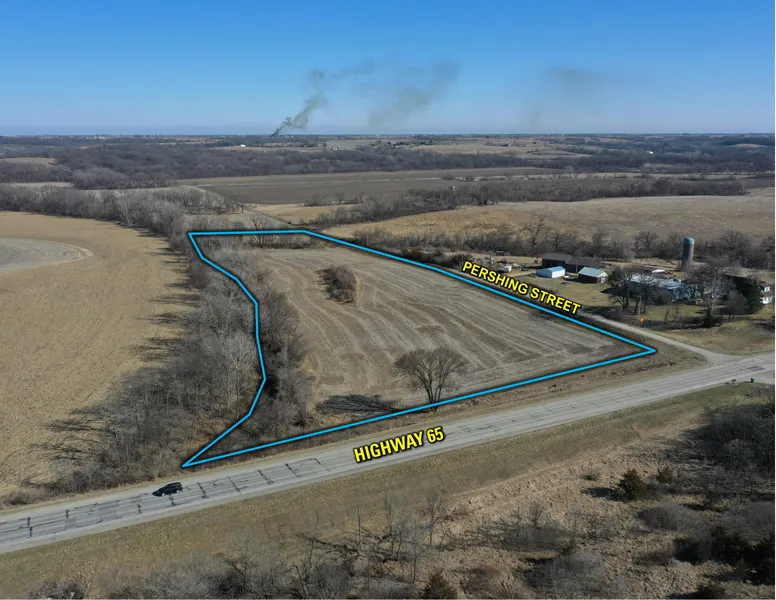 This picturesque 10-acre lot, nestled seven miles south of Indianola, sits at the intersection of Highway 65 and Pershing St. If you seek a prime location for building on a highway while maintaining privacy, this parcel offers the ideal blend. The property's northern border boasts a charming tree-lined creek, while a second one graces the eastern boundary. Accessible via Pershing St, which ends just beyond the property line, minimizing traffic impact. With expansive space for livestock, gardening, and recreation, this lot comes free of covenants or restrictions. Rural water and electric service is at the road.