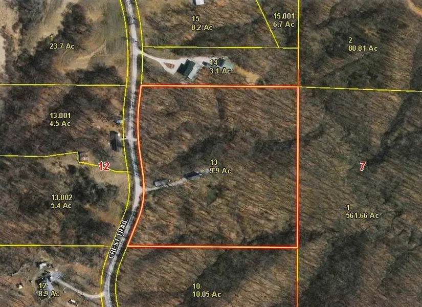 10 acres of woods/timber of PRIME HUNTING GROUND! Borders Sugar Creek State Conservation which offers over 500 acres of additional land for hunting or hiking. Electric and water on the property. Small older shed for storing ATV's or a small tractor.