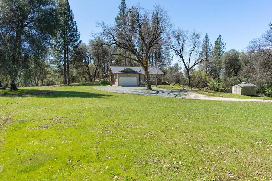 Open and spacious, lush green grass, big oak trees, and majestic granite boulders, wow what a setting for a home. Easy access off main road yet private, high-speed internet available, (2) 5 acres parcels being sold together, and the home is single level. The home has been taken care of, with a new roof, interior paint, upgraded hardwood floors, and stove. The main suite is large with an updated en-suite bath and spacious walk-in closet. Bring your horses, chickens, and your green thumb for the fenced garden area. Minutes to the Shenandoah and Fairplay wine country, less than an hour to downtown Sacramento, outdoor activities abound, this is a wonderful location and home.