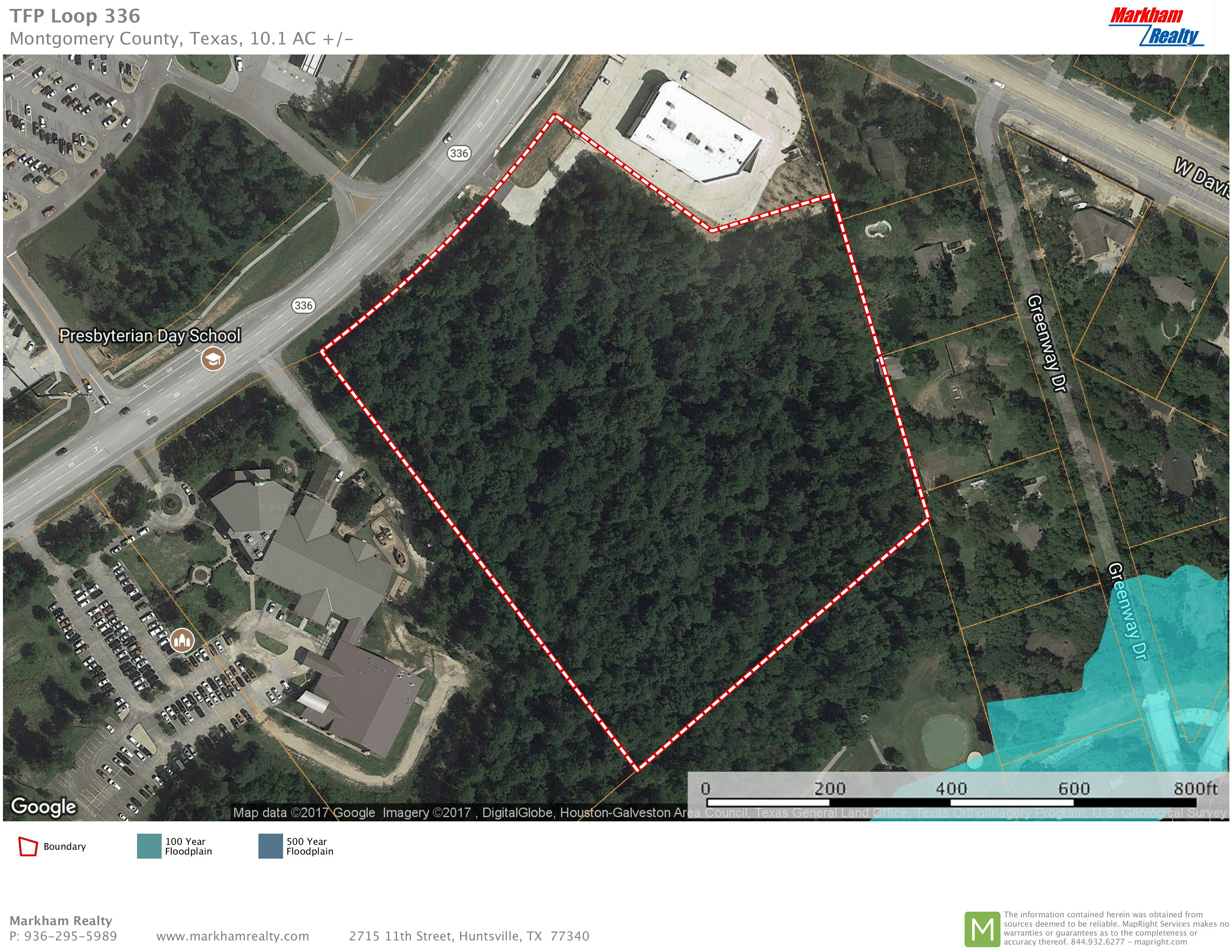 West of I-45 in Conroe this tract fronts the east side of Loop 336, and south of Highway 105. The property is situated in an area of rapid growth and development. There are not many large parcels remaining available in this area of Conroe. No flood plain issues, with all utilities available. Neighboring properties are CVS Pharmacy and HEB Grocery. The CVS Pharmacy location adjoins the property and is on the corner of Loop 336 and SH 105. A cross access agreement is in place with CVS Pharmacy allowing each owner to access either highway across the others property. This drive/entrance off Loop 336 is in place and permitted by TXDOT.