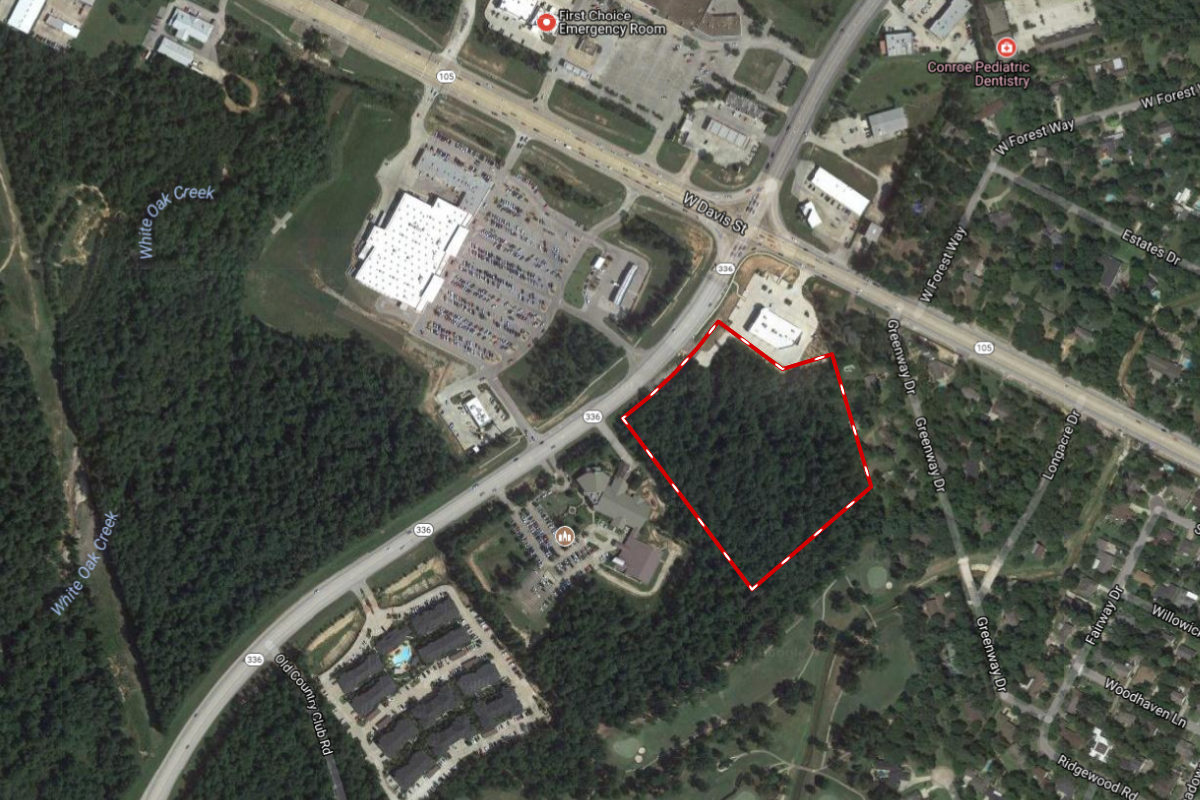 West of I-45 in Conroe this tract fronts the east side of Loop 336, and south of Highway 105. The property is situated in an area of rapid growth and development. There are not many large parcels remaining available in this area of Conroe. No flood plain issues, with all utilities available. Neighboring properties are CVS Pharmacy and HEB Grocery. The CVS Pharmacy location adjoins the property and is on the corner of Loop 336 and SH 105. A cross access agreement is in place with CVS Pharmacy allowing each owner to access either highway across the others property. This drive/entrance off Loop 336 is in place and permitted by TXDOT.