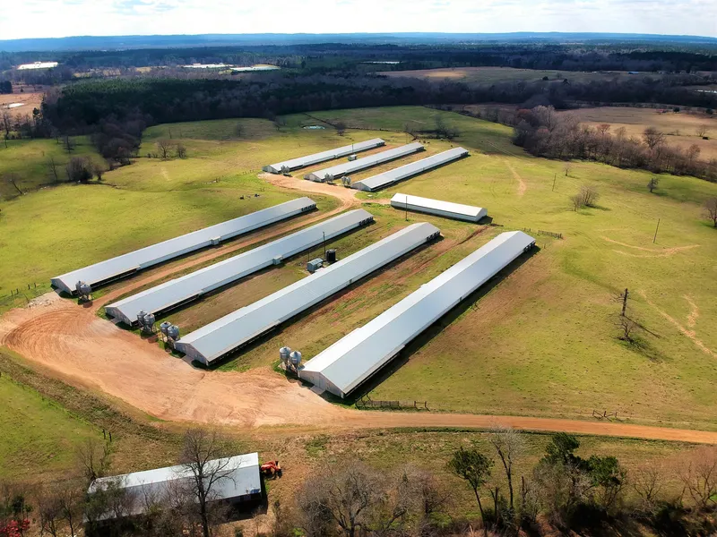 Tyson Broiler Farm. 10-40x400 ft. houses with capacity of 18,800 birds per house. This farm grows a 7 week bird for Tyson. Three houses were built in 1986, three houses built in 1996, and 4 houses built in 2001. There are a total of three water wells, community water, natural gas, 1-5,000 gallon water storage tank, 1-10,000 gallon water storage tank, 3 generators, 43x150 ft. litter barn, 2 pole barns, mobile home, Kubota 7060 M tractor, Lewis Bro. cake out machine, and bush hog. Houses have has lots of improvements and should need minimum improvement required from Tyson to receive a new contract.