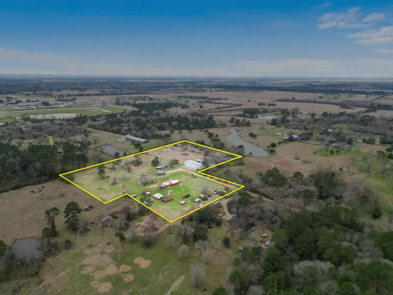10+/- unrestricted acres in the heart of Hockley, TX! The 3-bed, 2-bath brick home features a spacious open layout, a large primary retreat with ensuite bath & tile/vinyl flooring throughout! A 1-bed, 1-bath, 1,024 sq. ft. guest apartment with a full kitchen sits inside a 3,200 sq. ft. metal shop with water, electricity (110V & 240V), tool storage, & an extra bath on the lower level. The property also includes a 698 sq. ft. detached garage/workshop, two covered storage containers with power, & a 6-stall horse barn with water, electricity, a tack/feed room, & riding space. Cross-fenced with three pastures, livestock shelters, a chicken coop, a greenhouse, & a high-fence garden. Enjoy mature oak trees, pecan trees, apple trees & a seasonal pond. 9 of the 10 acres are Ag exempt for beekeeping! Double electric gated entry, secluded, & never flooded! Half a mile to Houston Oaks golf course & quick access to Hwy 290 & Houston Premium Outlet Mall! Don't miss your chance to tour this gem!