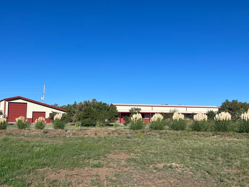 Nestled on 9.8 acres, this home features all steel framing, covered porches, a large workshop, RV storage and a carport. The open floor plan includes 2 bedrooms, 2.5 baths plus an office, with recessed lighting and 10 ft. ceilings allowing for ample natural light from Pella windows. Beautiful landscaping includes irrigation lines and a catchment tank, along with a 25 GPM PRIVATE WATER WELL. The workshop has a gas furnace, car lift, and a 1/2 bath. An adjoining 17 acres is available for an additional $135,000.
