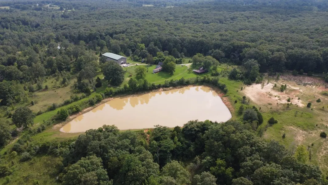100 +/- acres adjoining National Forest with live water for sale in Butler County, Missouri. STORM DAMAGED PROPERTY - SELLING AS-IS Located in between Poplar Bluff and Lake Wappapello at the dead end of a county road and adjoining several thousand acres of National Forest, this unique property features 1/4 mile of Mud Creek frontage as well as 2 ponds and a spring branch. Excellent hunting and fishing opportunities. A 120x42 block building has a small living quarter and the 2nd floor is framed up for an additional 5000 sf of living area with hardy-stove heating plus conventional CHA. Look close and you'll notice a tremendous amount of dirt has been moved to create not 1, but 4 motocross tracks!