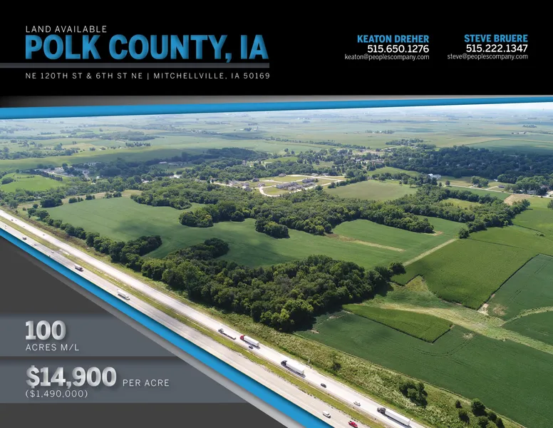 Offering 100 acres m/l of future residential development land located within the incorporated city limits of Mitchellville, Iowa. Mitchellville is currently in the process of updating their water infrastructure throughout the city. Once complete, the city will focus its efforts on expanding and updating sewer infrastructure and capacity, specifically in this area. Sewer service flow studies and planning are in process. Temporary and permanent sewer easements are in place to connect to existing infrastructure and service this parcel (See Sewer Map). In addition, there will be a lift station installed on the east side of the property, adjacent to NE 120th St. With excellent access to major travel corridors like Interstate 80 and Highway 6, Mitchellville is poised for growth. This property is slated for "the next residential development piece" in the city and offers a small-town, neighborho...