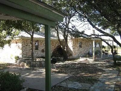 OWNER WILL FINANCE! Beautiful gently rolling hills with nice distant view. 70's stone ranch house with 2 fireplaces, shaded and breezy porch, small guest house, barn, and stone workshed. Covered equipment building with walk-in cooler, 2 bay garage, and patio area for covered outdoor activities. Ag. exempt, 30 gpm well, 2 tanks, rock cistern( swimming hole), 30+ acres coastal pasture, very nice stone entrance, and good Oak cover. There are several great homesites and a high point with exceptional view to north, east, and south. Great potential for horses, B&B, investment! Excellent location!!