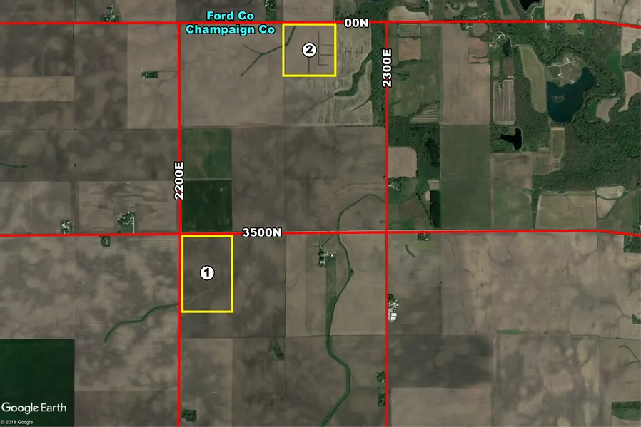 Take County Road 3500N east 4.3 miles and Tract 1 will begin at the southeast corner of the intersection of County Road 3500N and County Road 2200E. To reach Tract 2, travel north from this intersection 1 mile on County Road 2200E to County Road 00N and turn right/east. Travel east 0.5 miles on County Road 00N and Tract 2 will begin on your right.