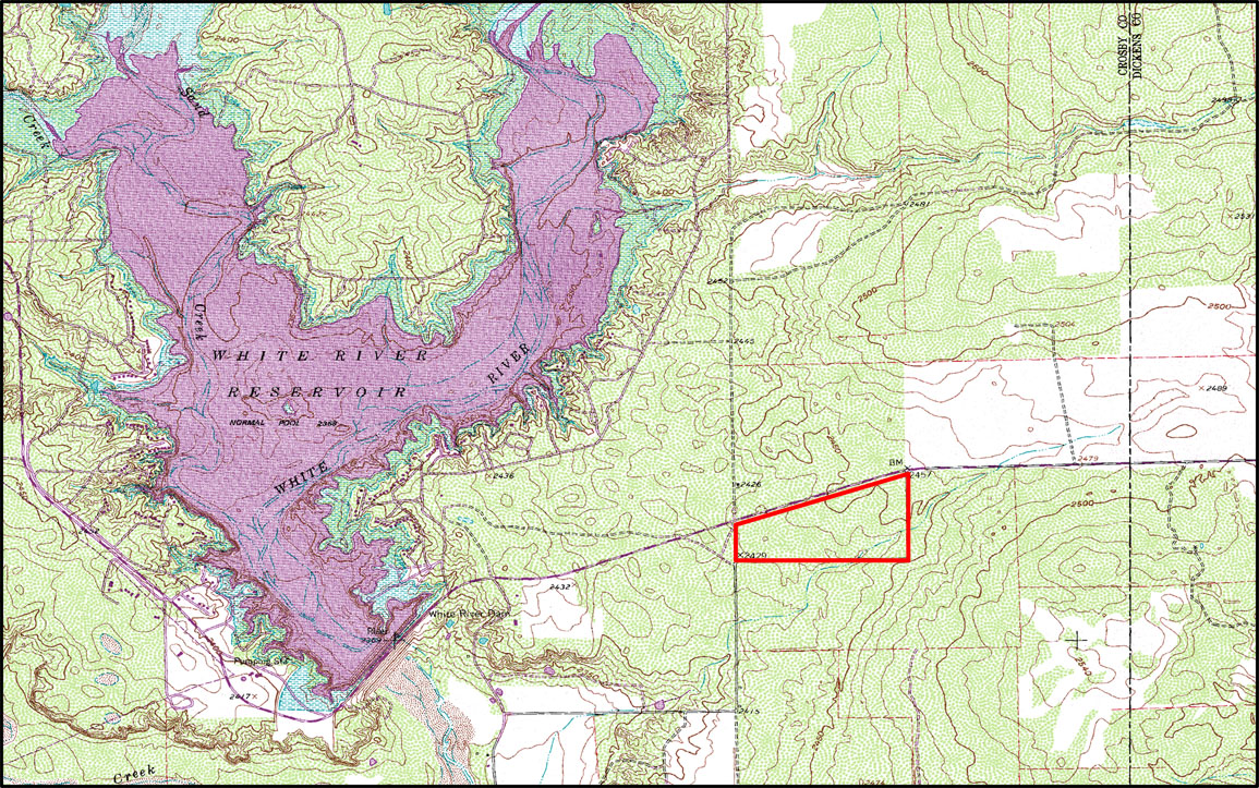 Terrain: The topography of the ranch is level to gently sloping. The majority of the property is open in appearance, with scattered shinnery motts. The property has a dense canopy of shinnery and soils are generally sandy.