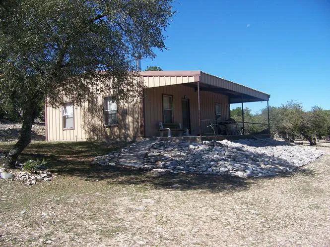 Recently Remodeled with all new appliances and furnishings. Private water well, easy two wheel drive access with maginficent views from the spacious front porch. Enjoy plentiful exotics and native wildlife. Property has a live spring, borders larger neighbors and sit in some of the prettiest terrain in the Hill County.