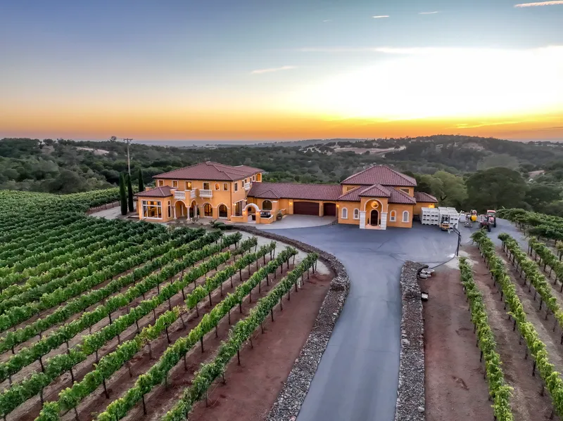 Welcome to the Crown Jewel of wine country living! This 20+/- acre property offers an exceptional living experience with outdoor space quintessential for relaxation or entertainment. Through the private gates you are surrounded by vineyards giving a sense of privacy and tranquility. The expansive entry features formal living and dining room, office, main level bedrooms, bathrooms, exercise room, gourmet kitchen with a butlers pantry that opens up to additional dining space and family room. With meticulous attention to detail this captivating estate offers elegant finishes such as detailed iron work, hand carved marble and top of the line kitchen appliances. Second level offering additional bedrooms and luxurious ensuite. Enjoy the picturesque outdoor oasis with a fireplace, gourmet kitchen and pool with spa, the ultimate retreat. The spacious 4 car garage offers ample space for parking, storage and outdoor toys. The theatre room, wine cellar and tasting/entertainment room are ready for all of your private events and entertainment. The upstairs guest quarters features a bedroom, office, bathroom, kitchen, living/dining room, fireplace and balcony with breathtaking views, offering a multitude of living arrangement options. Experience refined living in this extraordinary estate.