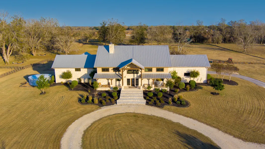 River Traces 23 beautifully manicured acres include 4 acres of riverfront white sand beaches, a pecan grove, stocked pond, deer for days, and stars galore. Enjoy country living from the covered back porch while staying warm nestled by the outdoor fireplace, grilling and cooking at the full outdoor kitchen, or having family cooking contests at the pizza oven. Or just enjoy the the quiet inside...