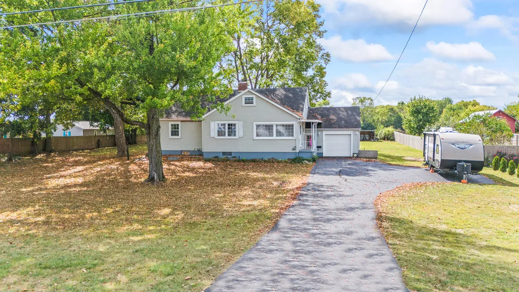 Welcome to this charming one-story home, full of character and space to enjoy. Featuring three bedrooms and one bath, this home offers both a cozy living room and a spacious family room. Connected by a beautiful double-sided fireplace, creating warmth and ambiance on both sides. A full basement and full attic provide endless storage or future expansion possibilities. Step into the bright four-season front porch, the ideal spot for your morning coffee, an afternoon read, or simply soaking up the natural light. Set on a generous .78-acre lot, the backyard is made for memories, host family gatherings, enjoy summer picnics, or unwind by a firepit under the stars. With plenty of room to play and explore, it's a true outdoor retreat. This home combines charm, functionality, and space inside and out! Don't miss the opportunity to make it yours!