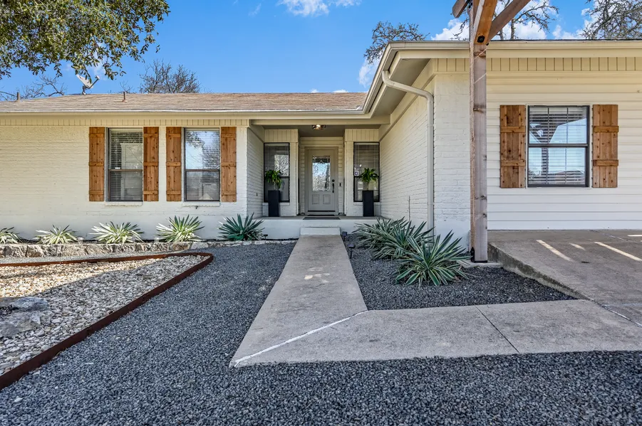 Experience the best of country living just 16 miles from downtown Austin! This updated home is situated on over half an acre in Manchaca, Texas. The charming exterior features impressive curb appeal, enhanced by stylish cedar shutters and a modern cedar carport. Inside, the beautifully updated kitchen includes modern appliances, a farmhouse sink, a unique tiled backsplash, and a spacious breakfast bar. It seamlessly opens to the main living area and adjoins a large laundry room that functions as a butler's pantry. This design is perfect for keeping appliances like the coffee maker and toaster oven out of sight, helping to keep the kitchen countertops clutter-free. The main living room boasts high ceilings and a skylight, allowing abundant natural light to fill the space. A sliding barn door leads to a large dome area with a stunning accent wall, which can be closed off from the rest of ...