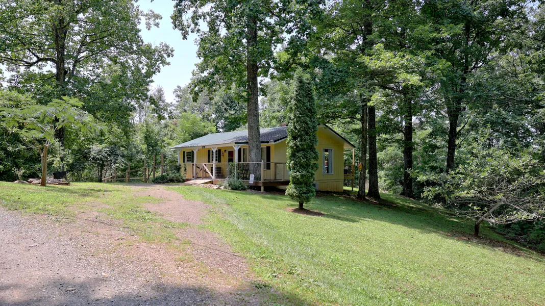 Sweet three bedroom ranch tucked away right off the Blue Ridge Parkway on just under one acre located only 10 minutes from Downtown Floyd. Work from home with your High Speed Fiber Optic Internet thru Citizens Coop! This hidden treasure has a covered front porch and back deck, fenced garden space and a storage shed in the back for yard equipment. Woodstove in the living room for efficient heat and mini-split heat pump in 2022, new kitchen cabinets & countertops installed in 2023 and new appliances in 2022 and a new pressure tank in 2018. The very spacious living room has vaulted ceilings and a walk-in shower in the hall bathroom w/ built in rain head, water fall head and body sprays! This home is surrounded by nature and move-in ready.
