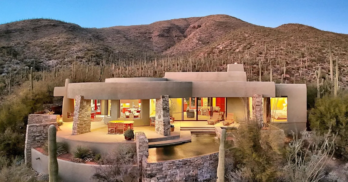 Stunning architecturally designed home by award winning architect, Kevin Howard, known for dramatic design, graceful curves, combining natural stone, glass & wood throughout creating an ambiance of bringing the indoors & outdoors together in a seamless transition. Exquisite 40'x26 ' Great room with 14 ft. high ceilings, dramatic stone fireplace, beautiful travertine tile floors, 20' long sliding doors to provide the open air experience to the incredible extended rear patio. Located in prestigious gated Sabino Springs on over 1 acre, overlooking the majestic golf course at Arizona National Golf Course, a forest of sahuaros & city views, you will be exhilarated by the natural beauty from every room. A chef's gourmet island kitchen features beautiful cherry cabinets, gorgeous granite countertops, stainless steel appliances, including Viking gas cook top, Subzero Refrigerator/freezer, microwave, dishwasher, under counter lighting, pantry, lovely breakfast area with walls of windows, 8 ft. Alder doors throughout, zoned air-conditioning, 3018 sq. ft., natural stone excavated from the property. Primary bedroom w/luxurious bath featuring cherry cabinets, double vanities, granite countertops, soaking tub, wonderful steam shower, large walk in closet & private entry to the rear patio. Second bedroom features en-suite bath, walk in closet and private entry to the back patio. The home office/3rd bedroom is a perfect combination of luxury & functionality w/wood built-ins, semi-circular desk, ample cabinets & bookcases. Enjoy the gracious resort outdoor living complete w/ gas heated negative edge pool & spa, fabulous outdoor fireplace, gas grill,1200 sq. ft. of covered lounging area, oversized 2 car garage w/ workshop, additional parking, spectacular city, mountain & golf course views.