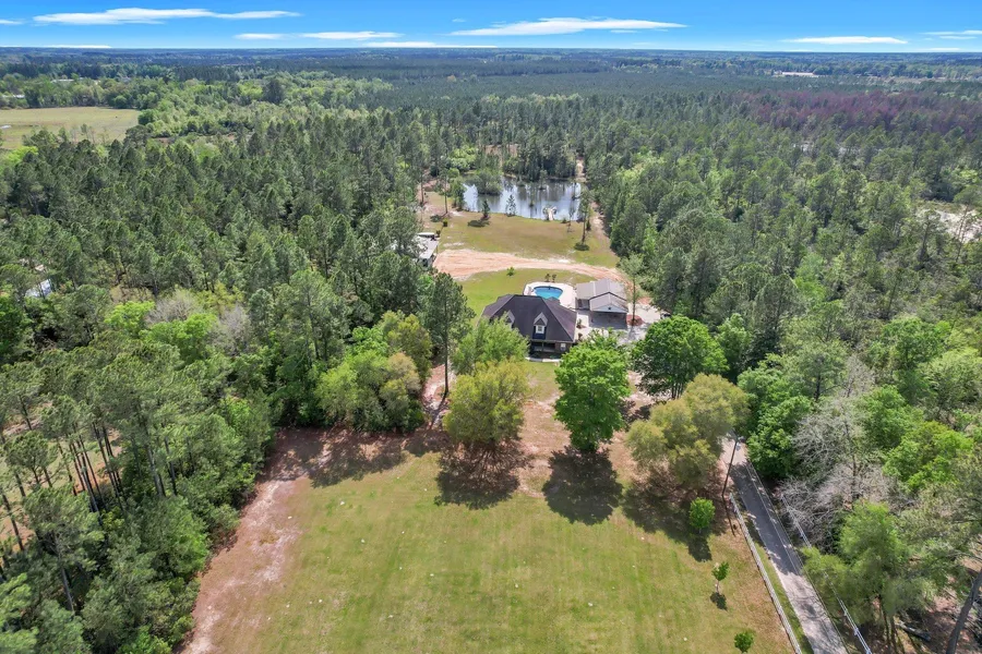 For those who enjoy the tranquility of nature, a stocked pond with a dock awaits, offering the perfect spot for fishing or simply unwinding by the water's edge. A shallow well helps irrigate the expansive yard, ensuring lush greenery all year round.