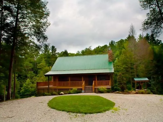 FOR RENT OR SALE! RENT FOR $3000 MONTH TO QUALIFIED PARTIES. REDUCED $50,000! Everything you could want is here! 92 wooded acres plus 10 acres farmland-you could have horses. Mountain views, a beautiful log home next to White Creek (really a river with almost 1 mile of frontage) with another small creek running into the larger one-good fishing, also hunt for turkey, deer, wild boar. Three miles of hiking, running or ATV trails. There is a large outdoor patio with built-in outdoor firepit, plus a covered deck overlooking the river and the home has a metal roof. All this is very private. The home has a state-of-the-art security system ($20,000) with remote video monitoring, a "safe room" in the walk-out basement with family room, bedroom, kitchen, bath, storage safe and "escape tunnel". This could be additional living quarters. The heat, water heater and stove are all powered by a free natural gas well on the property. The kitchen counters are granite. The house is wired to be hooked up to an auxiliary gas generator. There is an irrigation system for the plants which are professionally landscaped. Septic system is approved for 4 bedrooms. This would make a great hunting or fishing lodge and is a great retreat for a serious outdoors person.