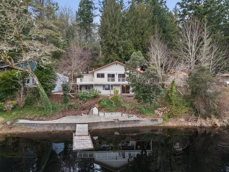 Welcome to a Mediterranean-inspired retreat on the tranquil shores of Lake St. Clair. Nestled on almost 1 acre w/ 108 feet of waterfront! The main floor living design provides convenience + accessibility, w/ expansive windows framing the breathtaking, year-round views of Dollar Island and the lush PNW foliage that surrounds you. The scenery is always picture-perfect! A rare concrete bulkhead offers protection while providing easy access to the serene waters of Lake St. Clair, ideal for relaxing or fishing from your own shores. The garden flourishes w/ springtime blooms, and the charming grape arbor adds a touch of Old World elegance. SHOP, chicken coop and an interior canvas ready for your personal touches awaits.