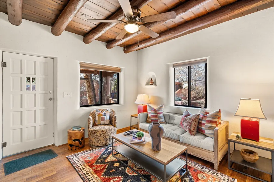 Come see this gem in the heart of historic Santa Fe. A casa and casita loaded with character and charm located on one of the most compelling and walkable streets in South Capitol is available for sale. Main house built in 1940 and consists of a lovely living room with original vigas, 2 bedrooms, a full bathroom and kitchen with new stainless steel appliances. Behind the main home sits a private lovely court yard and a separate guest house. The guest house, built in 1960, consists of a living room, full bathroom, bedroom, and kitchen. Both the casa and casita are heated with forced air heat and contain a stackable washer and dryer. One private off street parking space. This little gem is your private Santa Fe sanctuary, surrounded by trees and flowers while still close to everything.
