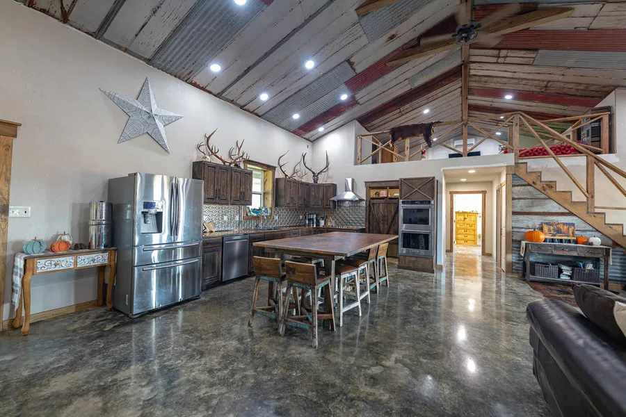 45+- acre property located just south of Hallettsville in the small community of Ezzell. The property consists of two homes: one a barndominium style home built in 2022 and an older home, 1970, with tremendous potential. The primary home (bardominium) is an 2394 square foot spacious dwelling. The home is a 2 bedroom 2 bath home with two additional loft areas, one being currently used as a bedroom and the other a flex space with multiple uses such as a workout area, study or extra storage space. The homes main area is an open concept between the kitchen, dining and living spaces. The kitchen boasts beautiful custom cabinetry and counter tops. Eye catching, concrete floors lead you throughout the lower level. The large master bedroom features a double vanity ensuite. On the opposite side of the home from the master bedroom is another large bedroom which spans the width of the home as we...