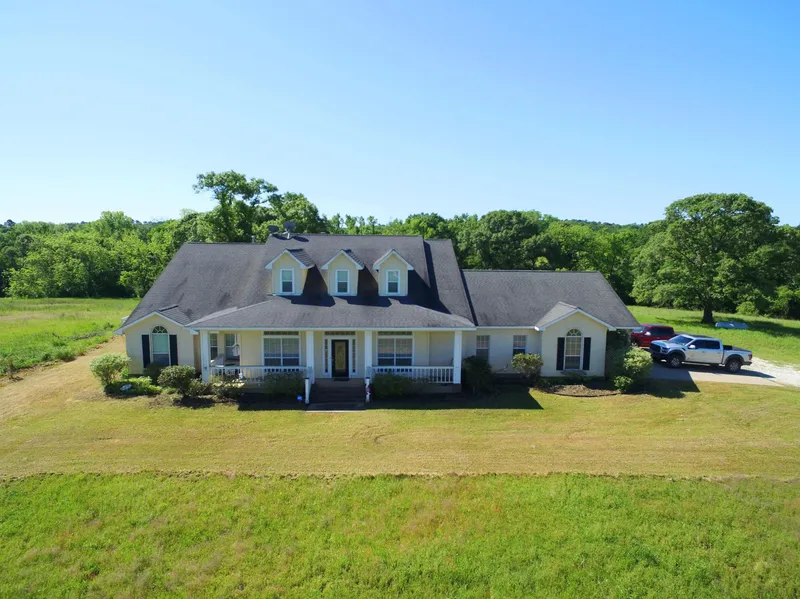 104 acres of pristine rolling hills with breathtaking views comprise this property. Approximately 80% is improved, coastal Bermuda pasture with the remaining land being a mix of giant hardwood trees and piney woods. Water features further the allure of the property. A spring feeds the 2-acre lake, which drains into North Creek, a year-round spring-fed creek. The crystal clear water meanders through the ancient red oak trees that line the banks, creating a peaceful feeling that accentuates the country life. The entirety of the property is fenced and has cross fences. Long road frontage with four separate entrances and a portion of black pipe fence with an automatic gate creates curb appeal that won't quit. You are immediately drawn to the 3100 sq. ft. country farmhouse-style home. Being built in 2006, the home still looks brand new due to the meticulous upkeep of the owners. Inside, the tall ceilings, open concept and exceptional finishes all tie together to create a beautiful home. A large open kitchen with a huge pantry that can store enough food to feed an army is the central focus of the home. There are 4 bedrooms, 2.5 baths, two living areas and much more. Upstairs is 988 sq. ft. of partially finished bonus room with another bathroom. Framing is done and all the electrical and plumbing have been run -- it just needs sheetrock and flooring. Large front and back porches along with an over-sized 3-car garage complete this country estate. Other improvements to the property include a 48'x30' metal barn on a slab with a 14' overhang along one side. There is also a set of Priefert working pens for cattle. Do not miss your chance to own this one-of-a-kind property that is the ultimate in country living! Offered at $950,000.