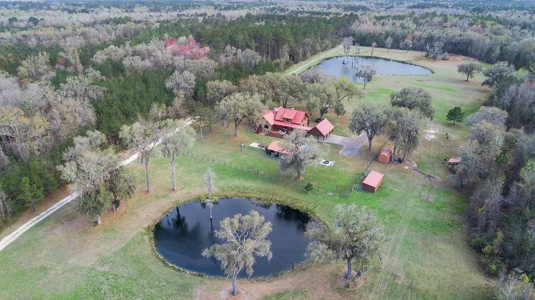 Mini Plantation! Custom Log home on over 104 acres just 20 minutes from Tallahassee. Swimming pool; two stocked ponds with Bass, Blue Gill, Speckled Perch and Tilapia; 506 sf rustic guest house with bathroom; 4,050 sf barn with man cave and bathroom; pole barns, etc. (see attached document). Original log home built in 2001. Remodel and 1,525 sf addition completed in 2018. Main house is three bedrooms plus loft open to below, office and mud room. Some features include automatic back up generator, vaulted ceilings, two floor to ceiling flagstone wood burning fireplaces. Great property for deer and turkey hunting. Approximately 45 acres in planted pines (10-year-old Slash & Loblolly). Must see to appreciate! Be sure to see 3D virtual tour attached!