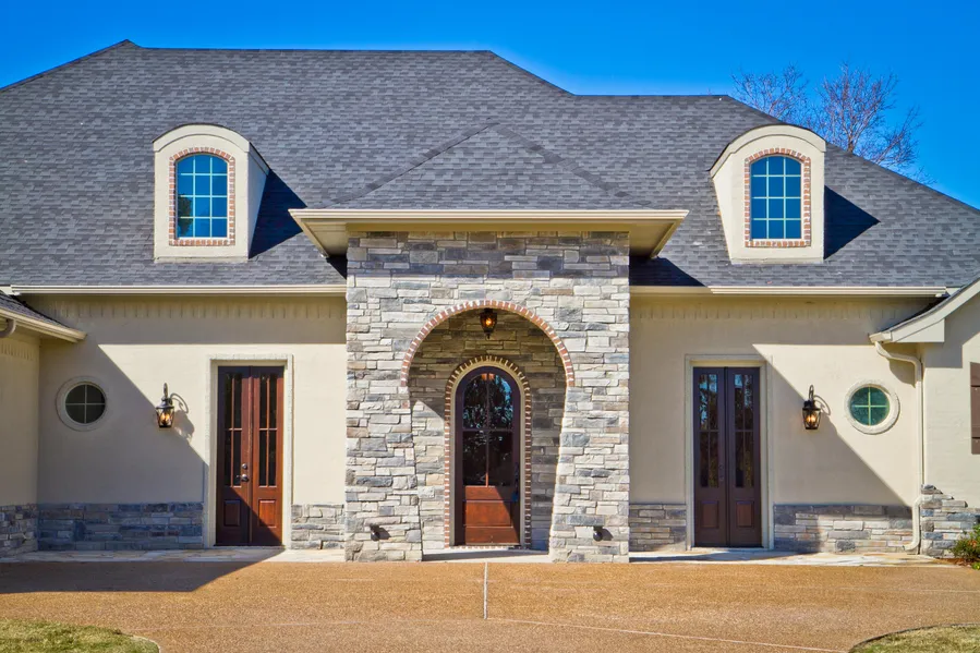 2014 Construction on Golfcourse! Beautiful 3/3/2+office built with finer taste, and attention to detail in mind. Stone/brick/stucco exterior with a flagstone walkway and aggregate pebble drive. Walk in the front door to a dramatic arched entryway with built in recessed, and lighted cove for displaying artwork and indirect lighting throughout the expansive open concept family room, kitchen and dining area. Bamboo flooring, Travertine Tile and 10' ceilings a wall of windows across back of the entire living space with a view of the Four East fairway. Kitchen features granite bullnose countertops, custom cabinets with under over lighting, Stainless Fridgidaire appliances Gas Range and microwave. Large Utility Room with separate mud-room. All bedrooms have own bathrooms with private lavatories and walk-in closets. Master suite has wall of windows and fabulous Master Bath is huge with walk in Travertine and tumbled tile shower his and her sinks and a separate vanity/dressing area.