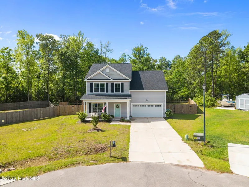 SELLER WILLING TO PAY $5,000 OF BUYERS CLOSING COSTS WITH ACCEPTED OFFER!!! Premium Coastal Charm living! This exquisite home is in the highly sought-after neighborhood of Everetts Creek Estates located in Sneads Ferry. As you pull into the cul-de-sac, you will be greeted with a considerable driveway and a quaint covered front porch! The perfect place to enjoy a hot cup of coffee on the cool spring mornings. Upon entering the home take note of the large living room cascaded with tons of natural lighting. Like-new LVP flooring throughout the first floor and 9 ft. ceilings downstairs make this home feel opened and spacious. Is entertaining something you enjoy? Well, we've got you covered! The kitchen is a chef's dream! It has more than enough countertop space and cabinets to house all those kitchen gadgets. The extensive back yard is the perfect place to hang out and enjoy those summer BBQ...