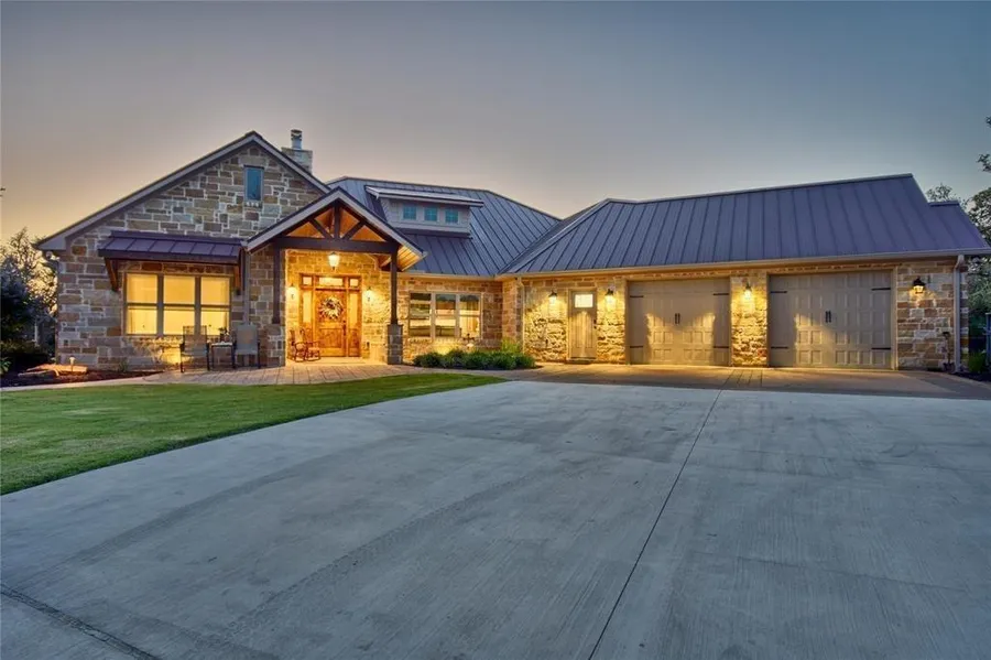 Deep in the heart of Central Texas, the perfect blend of beauty, acreage & home awaits. Come home to this beautiful 21-acre ranch estate w/meticulous attention to detail throughout the 2862 square foot home & adjacent party bardominium. The serenity of country living w/master's touch of pride is inherent in this property with exquisite wood ceilings, tiles, custom-built storage, 3 large bedrooms w/walk-in closets, 2.5 baths, this executive home has it all! Solar shades, screened in porch with full outdoor kitchen, insulated garage doors, state-of-the-art audio/video & underground utilities add the extra touch to this property. Designed for entertaining, the barn/shop/RV storage, has a full kitchen, wet bars, bath & is ready for your prized possessions to live & party in comfort. The shop is an air-conditioned mechanic's dream with lift. The beautiful landscaped acreage that's full of wil...