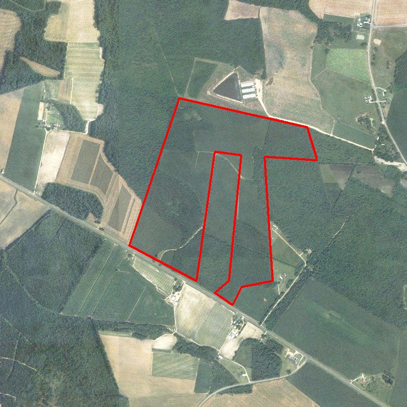 The tract offers 105+/- acres with approximately 46 FSA acres of cleared farmland, 54 acres of woodland and 2.5 acres of farm paths and old home site.