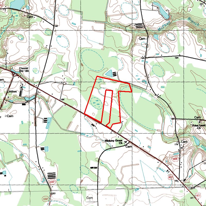 The farmland soil is predominantly Norfolk sandy loam which makes it prime farmland, suitable for locally crops. The wooded acreage contains Rains sandy loam, which classifies as a hydric or wetland soil.