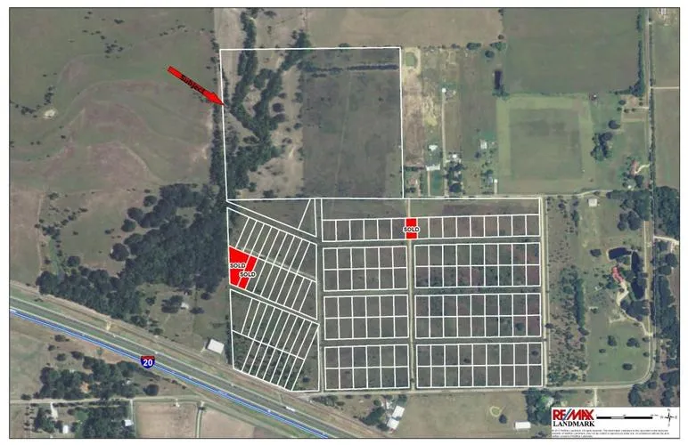 105 +- acres with frontage on I-20. Site was developed into 160 mobile lots in 1980s with streets, water lines, sewer lines, electric and phones, and sewage treatment facility. Sewage was never on line. Priced to sell as raw land but great potential for mobile home community