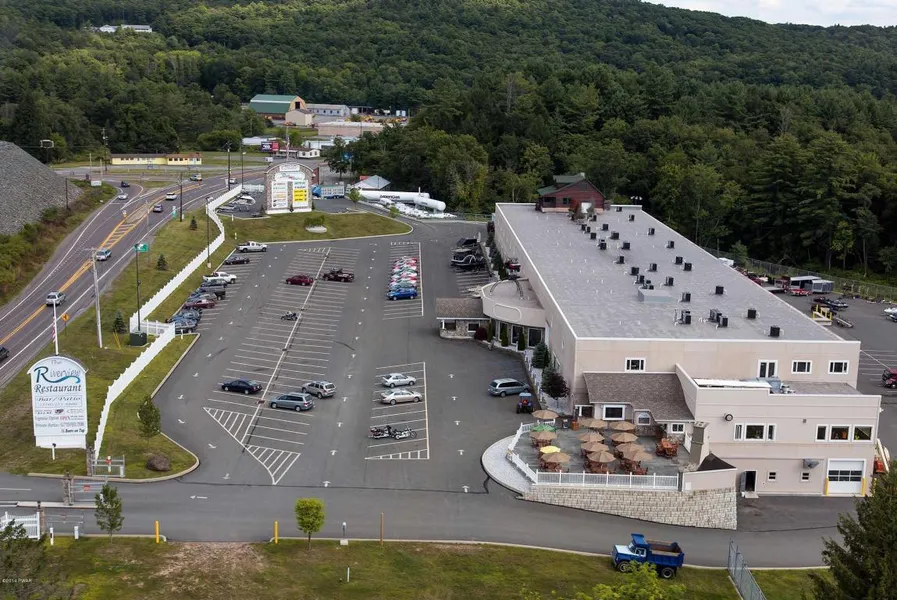 This 117,478 sqft comm building on US Rte 6 in Honesdale, PA near major box stores (Home Depot, Walmart, K-Mart etc) Building features lg showroom w/ glass elevator & pond & waterfall feature, 25+ offices, drive-in door & workshops, freight elevator, ample parking, restaurant area (seating 210+/-) w/ circular bar, outdoor restaurant area, beautiful river views, high end finishes! Log cabin on top of building to hide elevator shaft! 14.9 acres! 830 of road frontage! 353 parking spots!