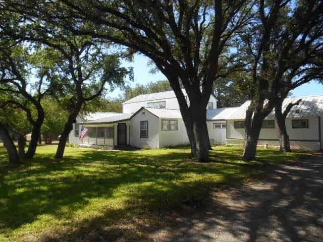 Hunters this would make a great base camp, lots of amenities, lots of privacy. This is a beautiful traditional home nestled under huge live oaks and pecans on approximately 7 acres. The property features a sprinkler system that provides a lush yard and landscaping and has both city and well water. The two-story stucco and wood siding home has a modern kitchen, laundry room, fireplace, and absolutely beautiful wood floors. Lots of storage and closet space in addition to a fully equipped Guest House or possible Mother-In-Law suite that opens into the back yard. A two-car enclosed garage, large metal storage/shop building complete the property. Another metal building at the highway could be used for retail space. Lots of extras. Country living at the edge of the small quaint town of London.