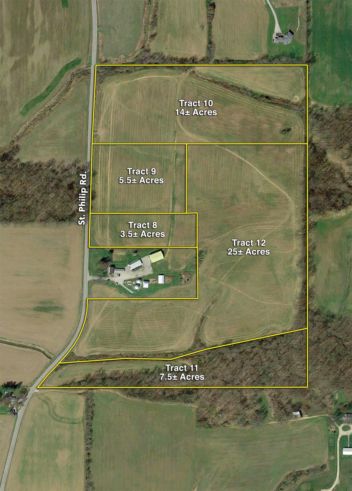 DIRECTIONS: From University Parkway, turn West on Marx Road, continuing on Copperline Road proceed approx. 2-miles to North on St. Philip Road to the POSEY COUNTY ACREAGE. From Hwy 66, turn South on St. Philip Road and proceed approx. 1.5-miles. Watch for signs.