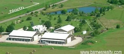 2- 60 X 84 Morton Bldg. with 7 12 X 12 Horse stalls, interior 24X 84 concrete floor, 1- 8X 18 garage door, waterways.
