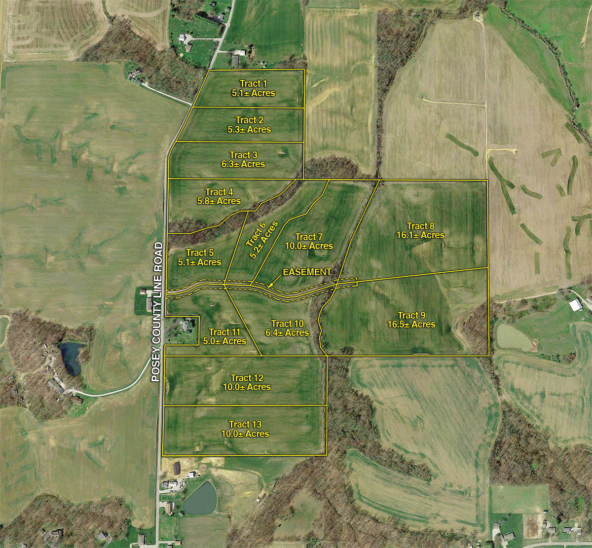 Tract 6: 5.2 ac; accessed via easement/drive