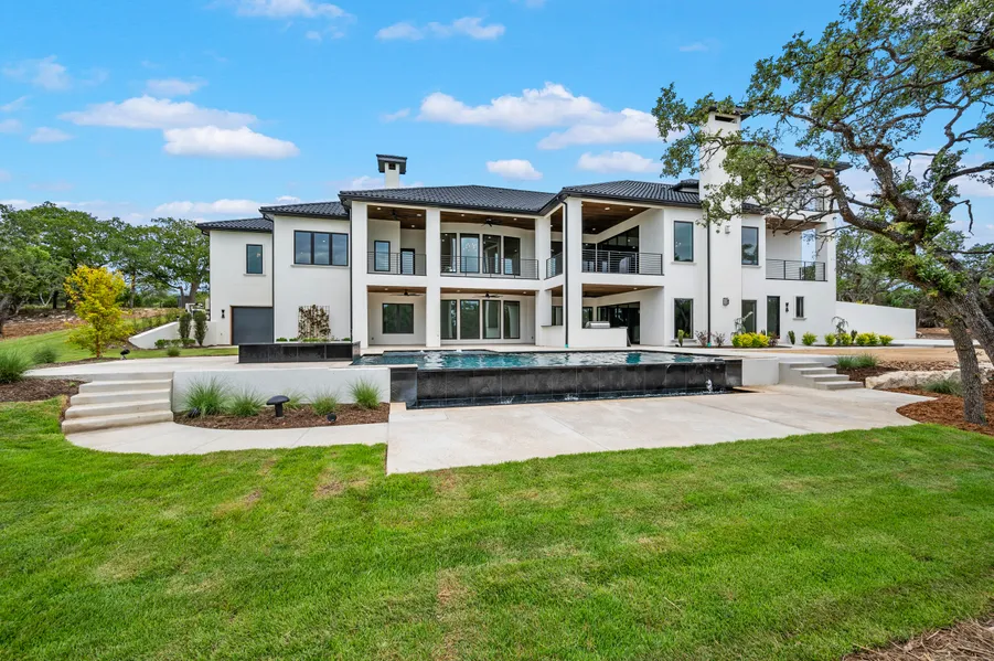 Introducing 1063 Monteola, a distinguished residence in the coveted Monteola subdivision in Bulverde, TX. This newly constructed, Wooldridge Built Home offers an unparalleled blend of size, quality, and breathtaking aesthetics across 10,525 square feet of luxurious living space. It is nestled on a sprawling 5.31 acres of park-like, oak-studded land with expansive hill country views. The exterior makes a statement with its Class 4 stone-coated steel roofing and all-masonry stucco exterior. The modern, insulated 4-car oversized garage is equipped with epoxy-finished floors and side profile garage door openers and offers the capability to install lifts. An additional bay caters to golf carts, ATV, and lawnmower storage. A paver driveway and circular drive offer ample parking for guests. The professionally landscaped grounds are enhanced by the picturesque views view found throughout. Your own resort-style, negative edge heated pool & spa awaits, complete with a full pool bathroom. Outdoor living is amplified with covered patios featuring wood-paneled ceiling accents and a fully equipped outdoor kitchen. The property also boasts a half basketball court that can be transformed into a pickleball or volleyball court. Inside, oversized double entry doors lead you to interiors adorned with smooth finished walls, LED lighting, and beautiful white oak hardwood flooring. The gourmet kitchen dazzles with soapstone countertops, a Subzero refrigerator, professional-grade Viking appliances, and a separate caterer's kitchen. Experience luxury in the master suite, complete with a floor-to-ceiling marble fireplace, private balcony, and custom accent wall. The master bathroom is a sanctuary with double floating vanities, marble flooring, a garden tub, a double-sided walk-in shower, and a warming drawer for robes and towels. Seven bedrooms, each with its charm, offer ample space and comfort. The home features eight full bathrooms and one half bathroom, all showcasing exotic stones and granites. Additional standout features include 3 gas fireplaces, Brizo Luxury Faucets, and extensive custom wood built-ins in the study. The lower level is designed for entertaining and includes a full kitchen, a game room, and a theater room outfitted with stadium seating, a 135" screen, a 4k projector, and JBL surround sound. The exercise room caters to fitness enthusiasts, while flex space provides additional storage. The main level houses the living room, study, master bedroom & bathroom, a guest bedroom and bathroom, a powder bathroom, kitchen & caterer's kitchen, family room, utility room, mudroom, and a 4-car garage. The upper level comprises three bedrooms, all with en-suite bathrooms, and a loft area. The lower level hosts a game room, full kitchen, laundry room, media room, exercise room, flex room, two guest bedrooms, two full bathrooms, and access to a single-bay garage. 1063 Monteola is a testament to grandeur and sophistication, offering a lifestyle of unparalleled luxury. Don't miss this opportunity to call this extraordinary estate your home.