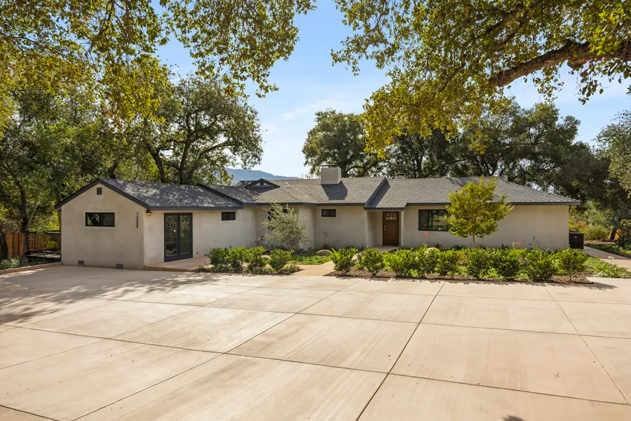 Completely Remodeled Ojai home with an attached self-contained Guest Studio and a detached oversized 2 car garage insulated and drywalled. Located in the prestigious Arbolada area of Ojai, the residence offers a peaceful escape on a sprawling lot of nearly half an acre.The approx. 2,334-square-foot newly remodeled main home boasts three bedrooms, two and a half baths, and a self-contained guest studio complete with a kitchen, bath, and private deck. The main home is a showcase of luxury, featuring a kitchen with stone countertops and custom cabinetry, and a master suite with a balcony overlooking mature oaks. The spa-like main bath includes a soaking tub and glass shower. Architectural details like archways and stone fireplaces add to the charm, while the exterior offers meticulously landscaped gardens and a covered patio. An adjacent 19,238 sq.ft. lot with swimming pool is also availabl...